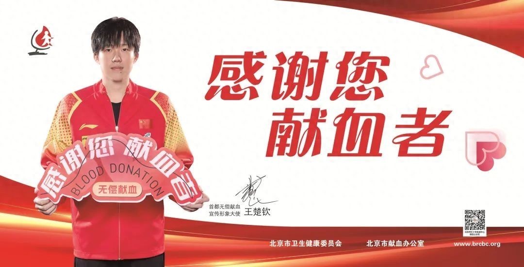 据报道,经北京市卫生健康委员会、北京市献血办公室联合授予,王楚钦已成为首位“00后”首都无偿献血宣传形象大使。在聘任仪式上,王楚钦接过聘书,并在授权书上签名,正式履行推广无偿献血文化的责任。